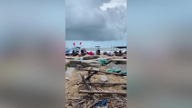 Footage shows the MV Reina Hosanna, operated by Montenegro Shipping Lines, half-submerged at the Balwharteco Port in the town of Allen in Northern Samar province early morning on May 13.