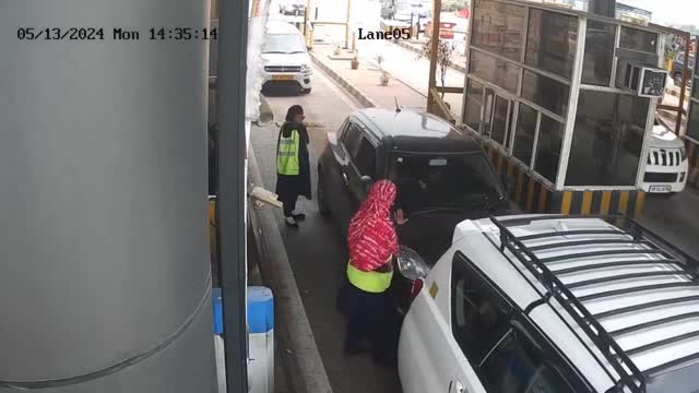 The SUV driver was approached by the women to ask him to keep his distance after tailing too close to a white vehicle on the front in Meerut Ghaziabad toll plaza in Uttar Pradesh on May 13.