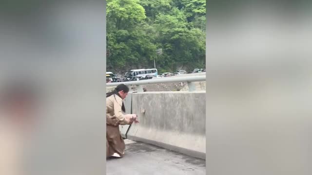 Ms Zhong performed cardiopulmonary resuscitation on a piglet on the side of the road, causing a two-hour traffic jam in Yichang, Hubei, China, on May 1.