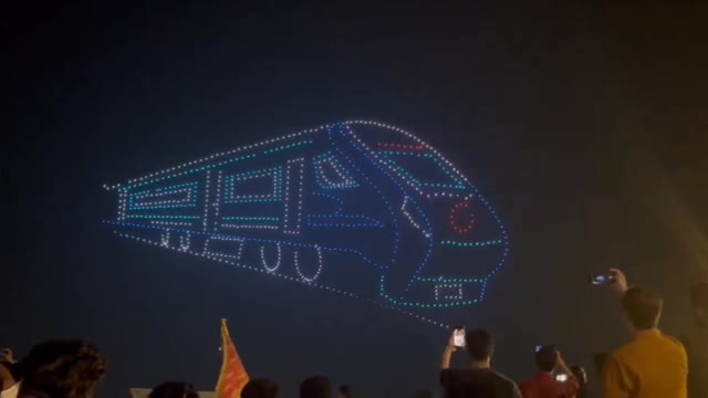 Footage shows aerial vehicles forming an image of a train using lights in Varanasi, Uttar Pradesh on May 9 during the gathering by Prime Minister Narendra Modi. 2024-05-13 13:27:47