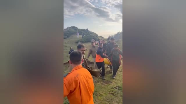 Footage shows local officials and soldiers carrying a female trekker on a stretcher towards the Cheetah helicopter in Himachal Pradesh on May 11. 2024-05-13 14:02:12