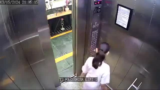 The youngster was going up to her unit when the doors opened on the third floor and the pooch bounded inside the elevator in Noida, Uttar Pradesh on May 4. 2024-05-12 13:08:04