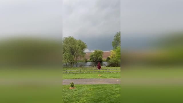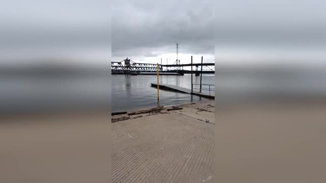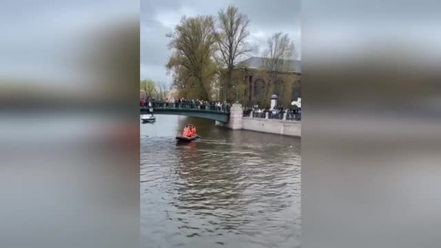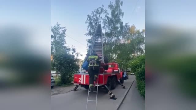 Footage shows one of the Russian Emergencies Ministry officers using a ladder truck to reach a 42ft-high birch tree where the feline had been stuck in Kursk. 2024-05-12 13:07:21