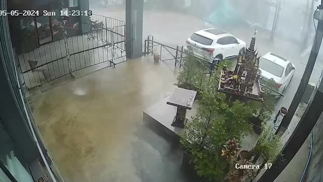 Footage shows the large metal sign plunging from the roof of an electrical equipment company in the Hat Yai District of Songkhla province amid heavy rain on May 5. 2024-05-10 16:22:39