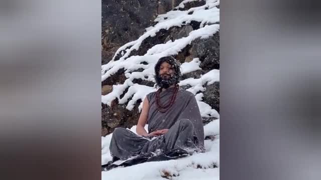 Footage shows Yogi Satyendra Nath sitting on the cold floor in Himachal Pradesh on May 10 with eyes closed and calm body despite the extremely low temperature. 2024-05-12 10:31:11