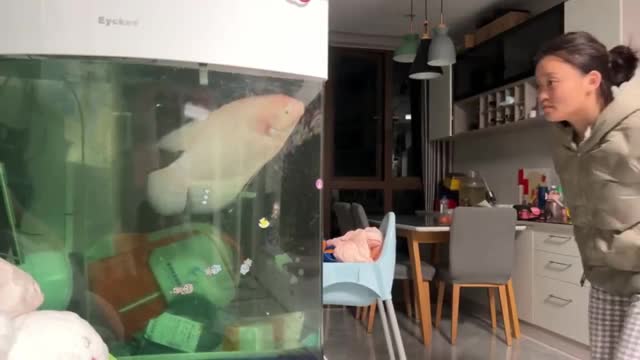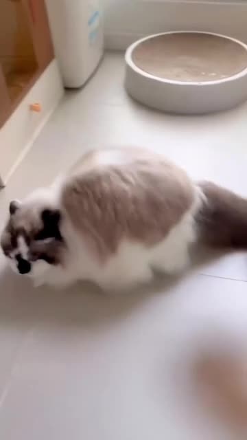 Footage shows the amusing four-year-old feline named Miya hopping forward at small distances like the hairy rodent in Shanghai, China, on March 6.