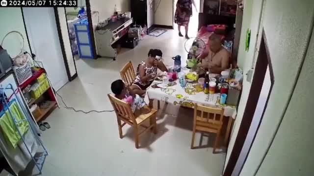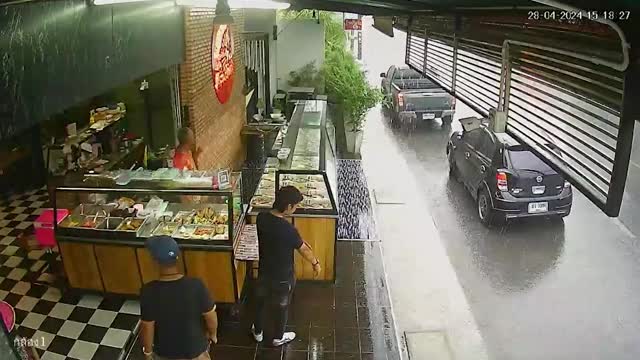 The residents were seated at their dining table eating noodles when a storm toppled a eucalyptus tree onto their roof in Lamphun province, Thailand, on May 7.