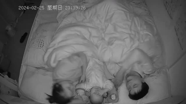 Footage shows the mother and father lying close on either side of the one-year-old child who was still awake in Guizhou province, China on February 26. 2024-05-08 22:40:12