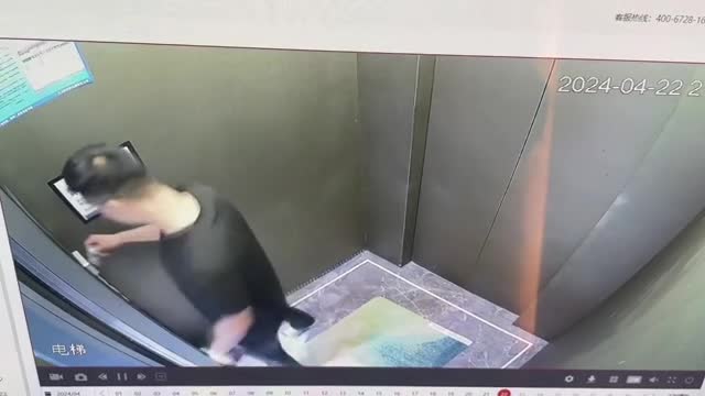 Surveillance footage from the lift in a building in Zhejiang, China, recorded on the evening of Monday, April 22, shows the man in black entering the lift while looking at his phone. 2024-05-08 18:18:37