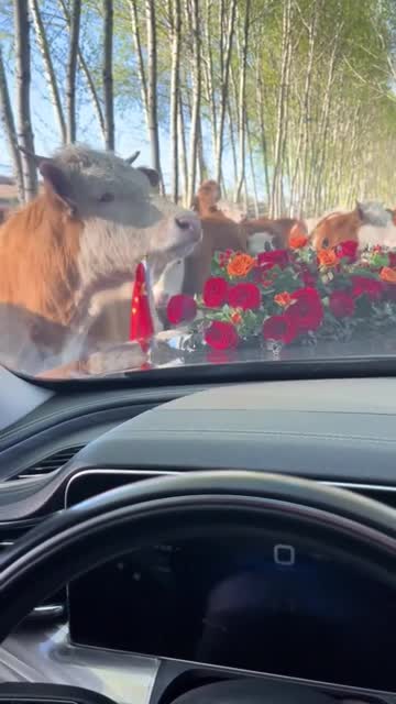 The car carrying the bride and groom was forced to slow down by the herd of cows being driven down the road at Dehui, in Jilin, northeast China. 2024-05-08 18:16:05