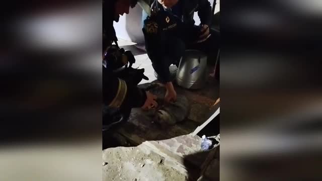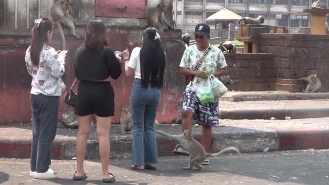 Footage shows the two 3ft-long reptiles standing on hind legs while using their front limbs to grapple each other in Ratchaburi Province, Thailand on April 27.