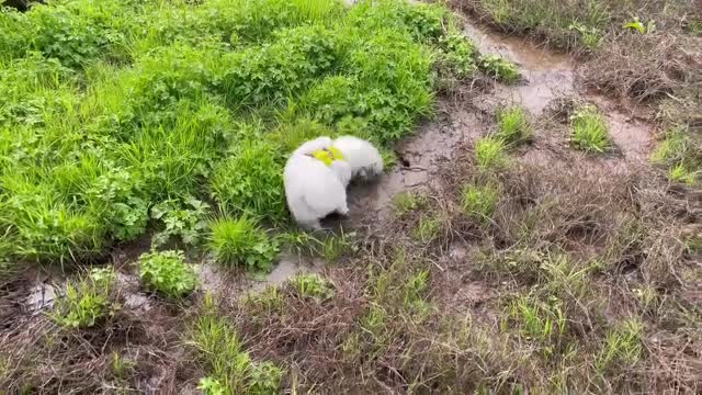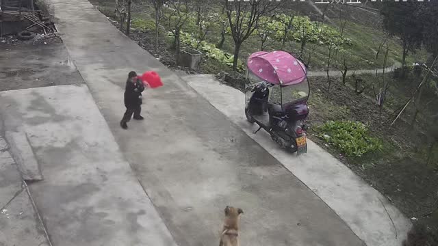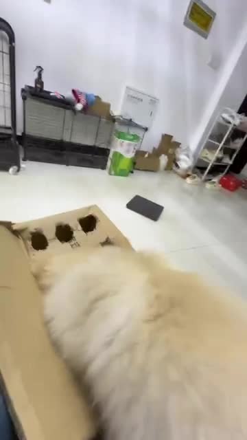 Ms. Wang came up with a clever idea to bond with her energetic golden retriever pup by creating a game alike of the 'Whack-A-Mole' game using a paper box and a sausage in Suqian, Jiangsu, China, on January 20.