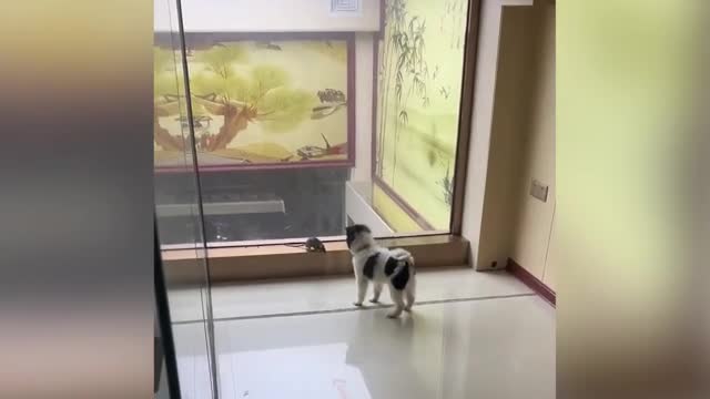 With a bark, the small dog startled the black mouse, causing it to jump repeatedly at each bark.