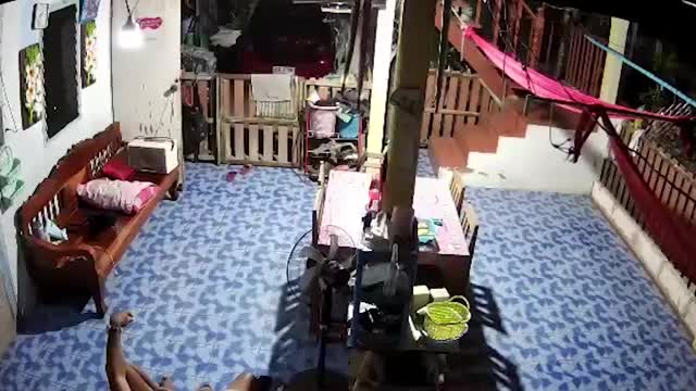 CCTV footage shows the venomous serpent emerging from under a couch and writhing near the feet of Apisak Ruangsom, 49, at his home in Ang Thong province on April 23.