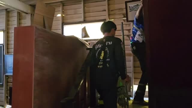 The officers bashed holes through the ceiling panels as they hunted the 12ft-long reticulated python terrorising the two-storey house in Chonburi province on April 30. 2024-05-01 16:02:17
