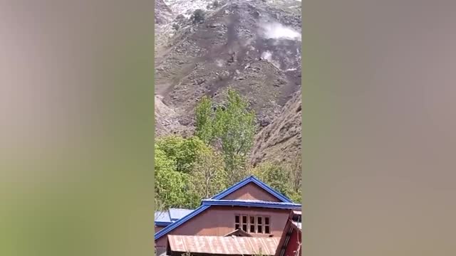 Footage shows the huge rocks tumbling down the slopes towards houses in Kamalkote village, leaving residents terrified on April 29. 2024-05-01 18:24:08
