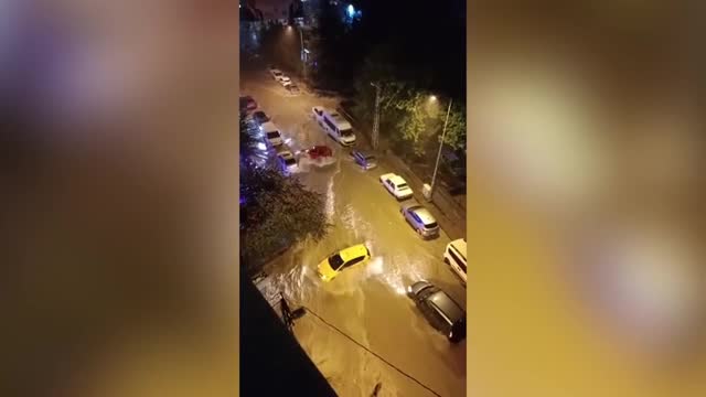 Footage captured from an apartment block in Sincan shows vehicles being battered by the raging torrents of water gushing through the street. 2024-05-01 16:33:00