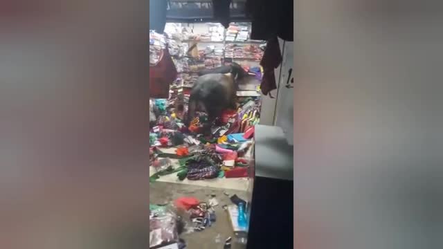 The farm animals wandered out of their field before terrorising residents in the Paan Dariba shop in Gudandi Bazaar in Jabalpur on April 8. 2024-05-01 18:31:06