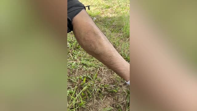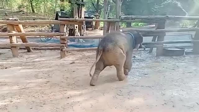 Footage shows the elephant calf named Meena eager to be doused with water at its pen at the Khao Ang Rue Nai Wildlife Sanctuary in Chachoengsao, Thailand, on February 9.