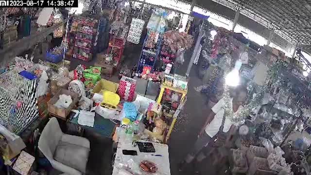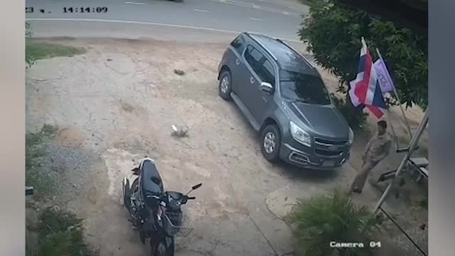 Video shows the six-month-old guard bird Mapraw rushing to peck a vendor when he reached for the woman's box full of coins in Sa Kaeo province, on August 17.