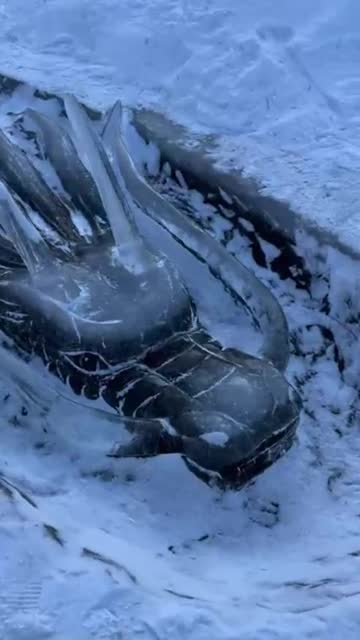 Footage shows the creative local creating the base for the massive figure using a hatchet and a shovel before adding details to it in Jilin, China, on January 23.