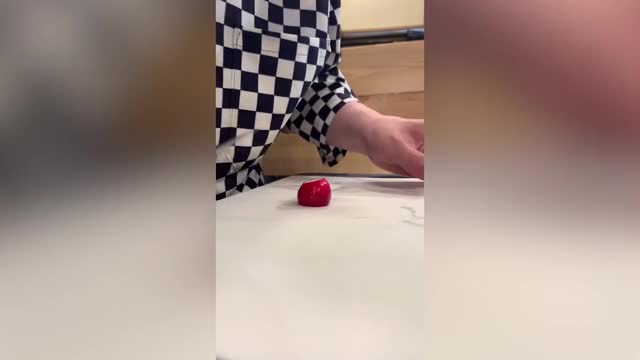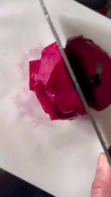 Ms. Luo showcased her art in an unconventional manner, using the juice from a red dragon fruit and a butcher's knife to draw a portrait on paper in Shanwei, Guangdong, China, on April 8. 2024-04-30 13:17:01