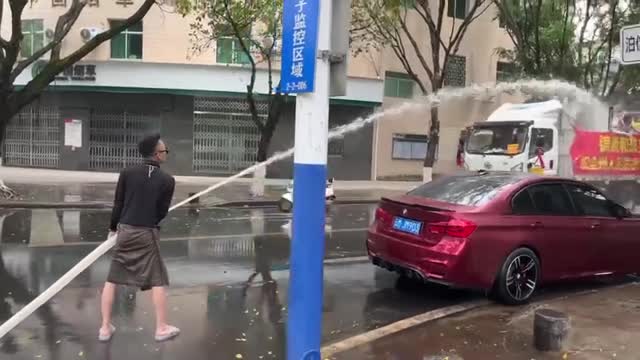 Hao Guangyi captured the comical scene of a guy using a high-pressure hose to splash water on a passing vehicle in Dehong, Yunnan, China, on April 13. 2024-04-30 13:16:40