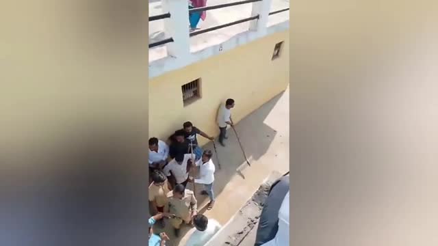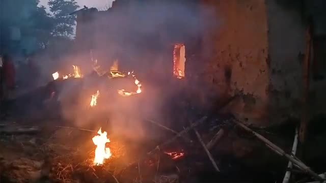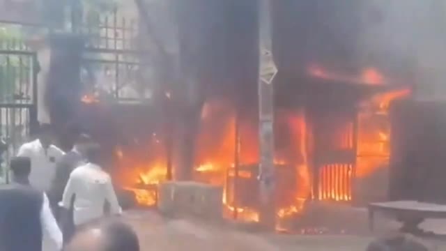 Footage shows the blaze engulfing the fence and other sturctures at the front part of the Court of Jalaun in Uttar Pradesh on April 29. 2024-04-30 13:14:29