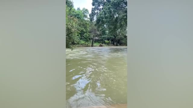 Footage shows the locals chasing the three children as they floated along the Songaria River in Kanchanaburi, Thailand on August 14. 2024-02-12 11:34:47