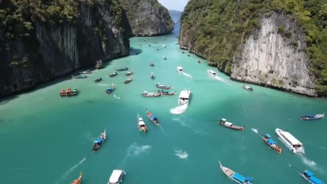 The picturesque Pi Leh Bay in southern Thailand has soared in popularity with holidaymakers amid the rebound in tourism since pandemic travel restrictions ended. 2024-02-12 14:25:53