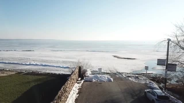 The Harrison Fire Department shared the footage, taken from Firelane 8, which shows cracks on the frozen surface and open water pooling as the ice started to melt. 2024-02-12 11:21:38