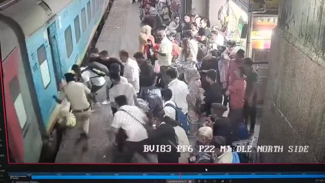 CCTV footage shows the old woman holding onto the door rail of the coach as she was being dragged along at the Borivali Station in Mumbai, India, on February 8. 2024-02-12 12:52:45