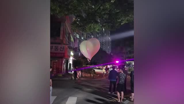 Video shows one of the balloons landing near a car park in front of a building in Incheon, around 17 miles from the capital Seoul, on June 1. 2024-06-06 16:38:36