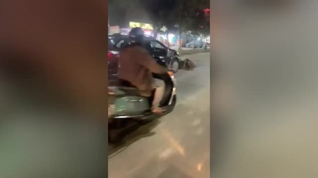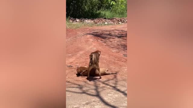 Footage shows the brown canine tapping on his buddy's stomach and when he wouldn't move, he began pulling him around on the street in Nakhon Ratchasima province, Thailand on August 10.