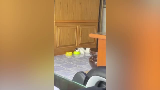 Footage shows the feline swaying its tail while sprawled on the furniture as its friend playfully tried to catch it behind at home in Inner Mongolia, China, on January 25.