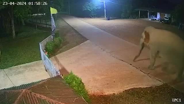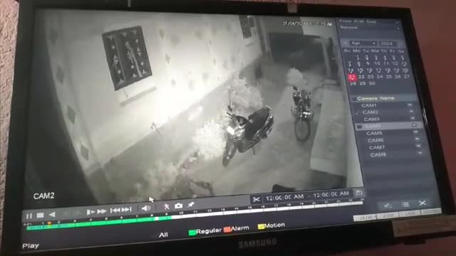 CCTV footage shows the men sneaking at the dead of night to roll away a motorbike from the property in Bihar, India on April 22 at 1:15 am. 2024-04-24 16:03:40