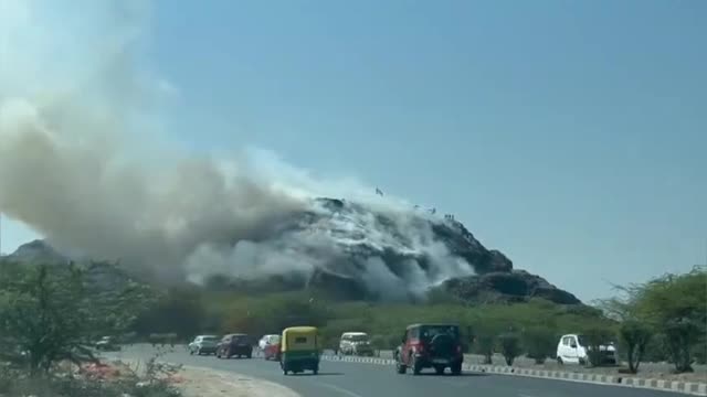 Footage shows the toxic fumes emerging from the hill of waste at the Bandhwari Landfill when the fire broke out in the facility in Gurugram, Haryana, on April 23 morning. 2024-04-24 15:58:30