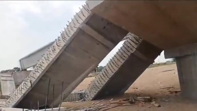 Footage shows the aftermath with lane slabs of concrete with metal bars leaning to the ground in Peddapalli, Telangana on April 23. 2024-04-24 15:58:08