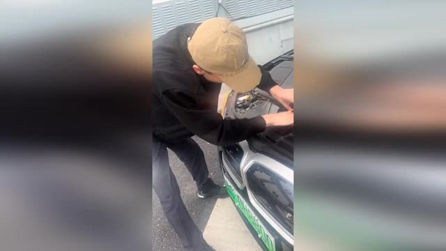 This is the incredible moment a BMWowner pulls over at the side of the road to investigate a squeaking noise and discoversfour kittens hiding in the engine. 2024-04-24 11:32:22
