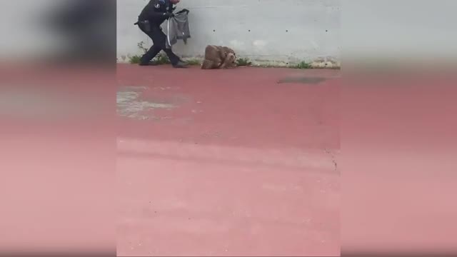 Footage shows the Madrid Municipal Police draping a towel on the little bird that was stranded at the Local Institute Madrid on April 18. 2024-04-24 11:47:02