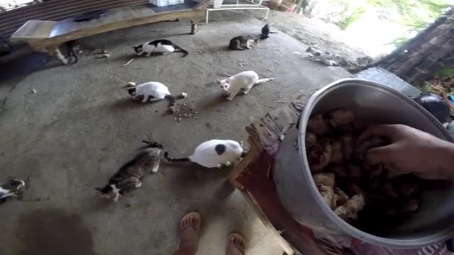 Footage shows Harry Corillo giving fish and meat to the tabby felines that he found on the street and adopted into his house in Bulacan province, the Philippines on March 31.