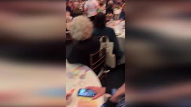 Footage shows the one-year-old pooch named Dopey nestled in the pink and white space-themed ride that swayed while playing music in Cabanatuan City, the Philippines on April 16.