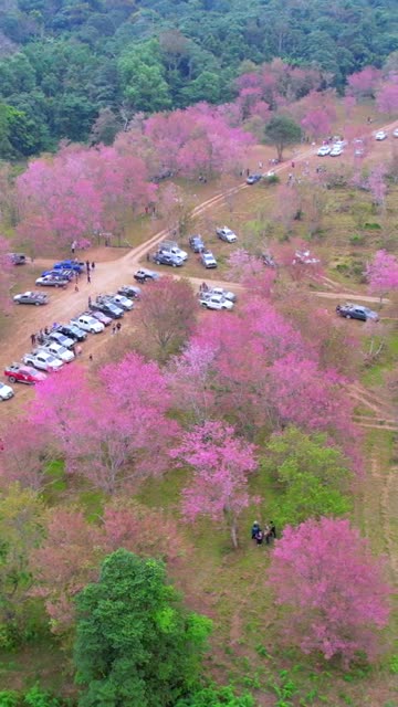 Tourist Kai recorded the stunning pink flowers in full bloom across the mountains of Phu Lom Lo in Phu Hin Rong Kla National Park in Loei province on January 30.