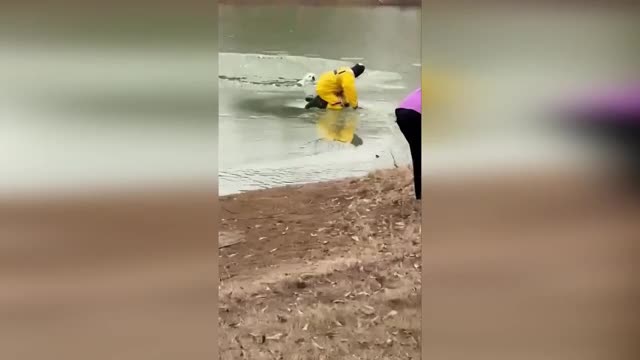 The New Melle Fire Protection District responded to a call about a dog that had fallen through the ice on a pond on South Point Prairie Road on Monday, January 30.