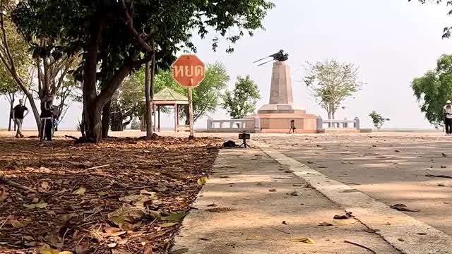 Footage shows the 11-month-old black and white moggy named Jomthong lying on the ground while embracing the drink in a plastic container in Nakhon Ratchasima province on April 9 as temperatures soared to 38 degrees Celsius.