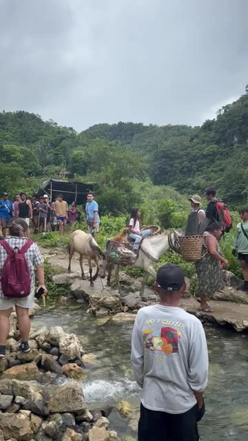 Footage shows the pooch nestled in the woven string container while a girl sat on the back of the horse beside it in Rizal province, the Philippines on March 29.