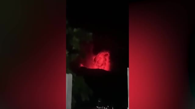 Footage shows a glowing red geyser of lava spurting from the volcano's mouth as bolts of lightning arced within the smoke plume in the Sitaro Islands Regency in North Sulawesi at around 7:19 pm on April 16.