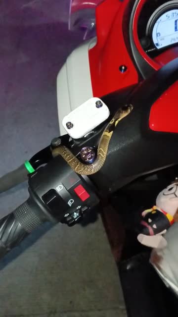 Footage shows the tiny but deadly snake slithering on the front of the motorbike as it was found by the vehicle's owner in Pathum Thani, Thailand, on April 5.