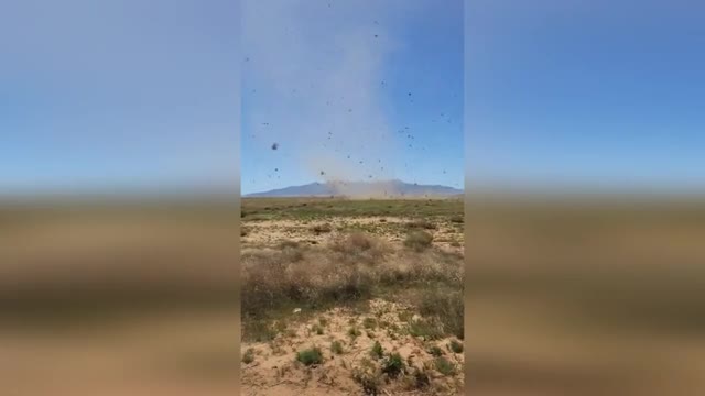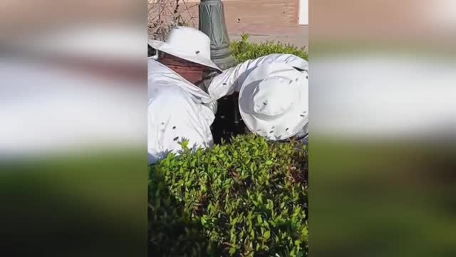 Footage shows the emergency responders from Pobla de Farnals wearing protective gear and nets to cover their heads while cleaning up mailboxes and lamp posts swarming with insects.
