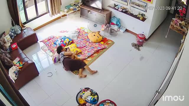 CCTV footage shows the one-year-old British shorthair Django sitting on 10-month-old Nong Khao's face and scratching him with paws in Nonthaburi province, Thailand, on August 1. 2024-01-25 11:34:47